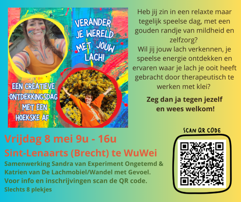 ""Ik kwam volledig blij en ontspannen terug van mijn lachwandeling met Katrien. Zo wandelen en gemeend lachen in het heerlijk ruikende bos na een force regenbui. Je voelt je helemaal herboren. 'n Absolute aanrader! ""