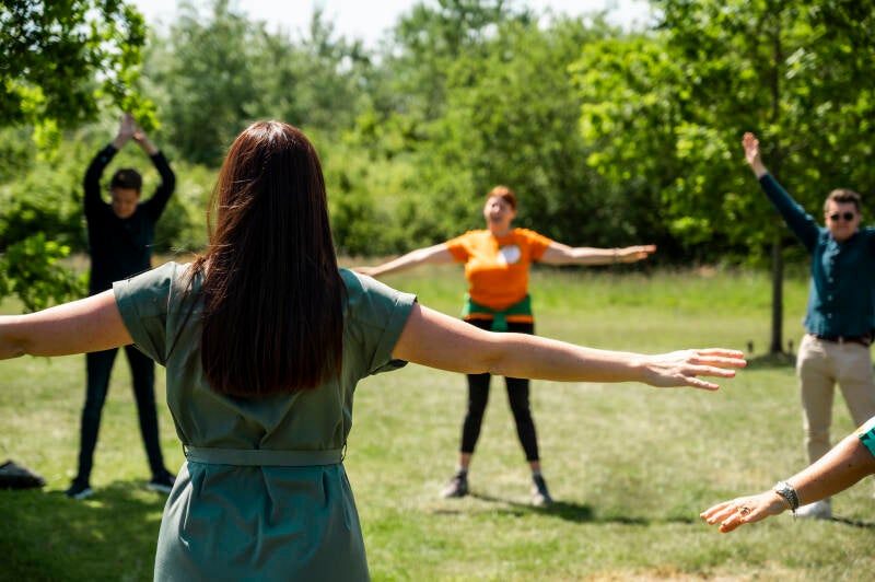 - We houden een ontspannende lachmeditatie.